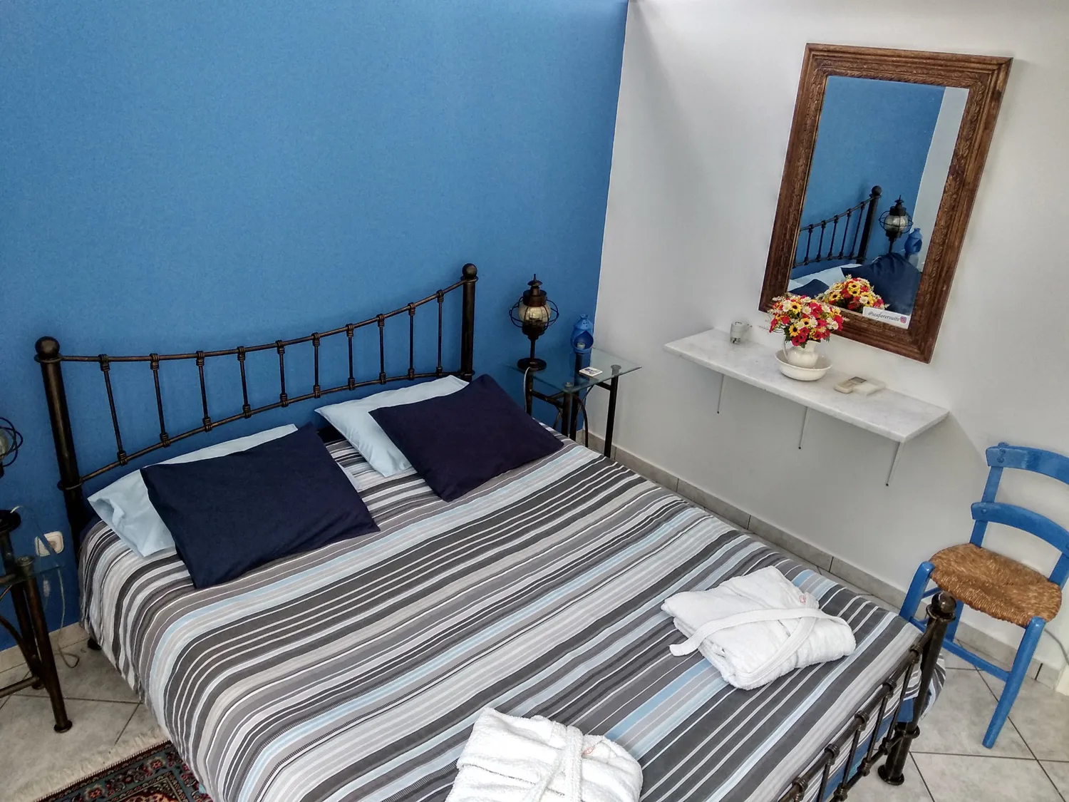 The Seafarer’s Suite is located on a quiet alley street, where there is no car passage. At the same time, the Seafarer’s Suite is only one minute (on foot!) away from the beach and a cafe is conveniently located along the water’s edge! Take the short promenade to explore the taverns and local shops. Great shores are within walking distance as well. Galaxidi is known for its “on-foot distances” since everyone walks to move around the town.